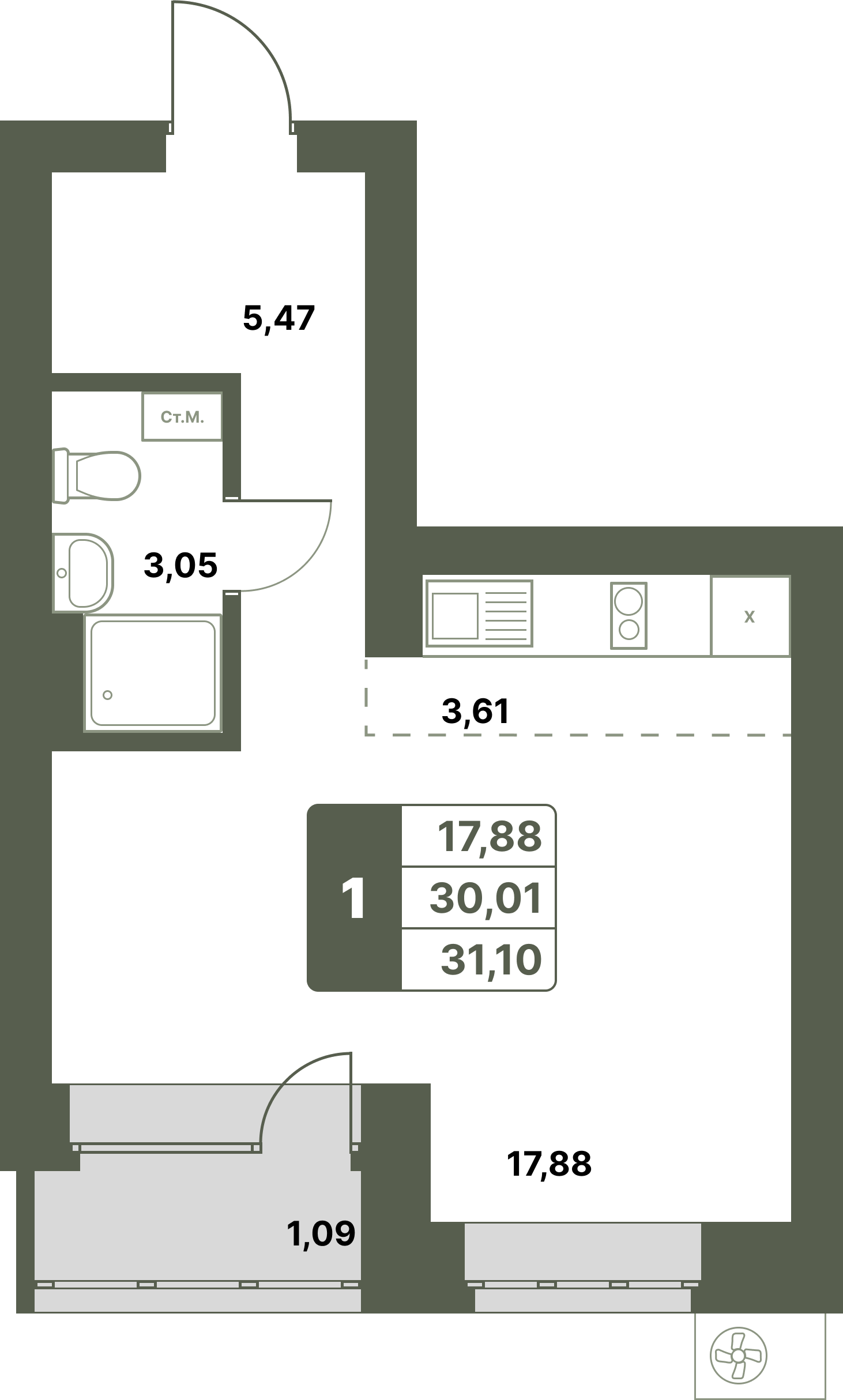 квартира в новостройке 31,10 м2 по ул. Лётчиков 1/9 за 4105000 руб. |